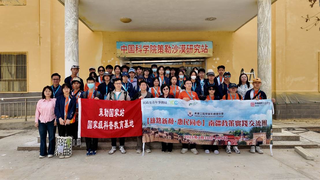 2026年4月3日,策勒站迎来了一批特殊的远方来客——来自香港东华三院甲寅年总理中学的40余名师生。一场以“探索荒漠奥秘、感受科学力量”为主题的科普活动在此展开,通过实地参观、科普讲解、互动交流与动手实践,让香港青少年近距离触摸祖国边疆的自然脉搏。