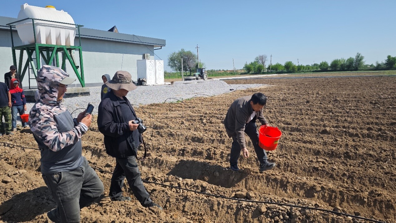 在卡拉卡尔帕克斯坦共和国努库斯区、卡什卡达里亚州(卡什卡河州)穆巴拉克区、布哈拉州卡拉库里区、纳沃依州卡尔玛纳区和吉扎克州阿尔纳塞区五个盐生植物园,中方专家对园区规划、滴灌系统设施、植物播种和出苗等情况进行了深入调研,赠送了土壤质量监测仪器,解答了乌方建园中遇到的实际问题,现场向乌方园区工作人员培训了盐生植物种子播前种子处理、播种、滴灌管理以及仪器使用方法等。